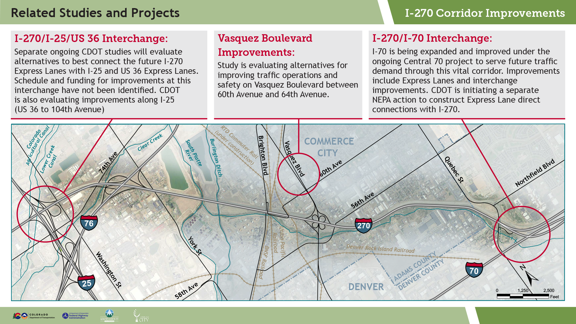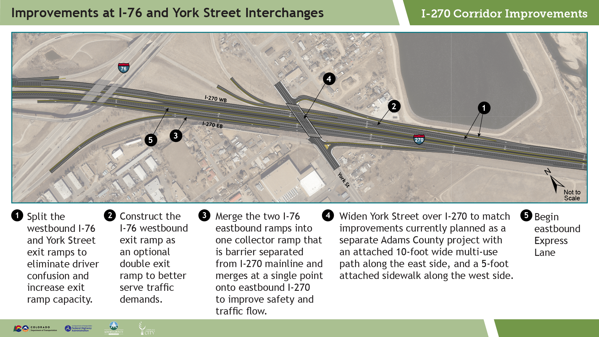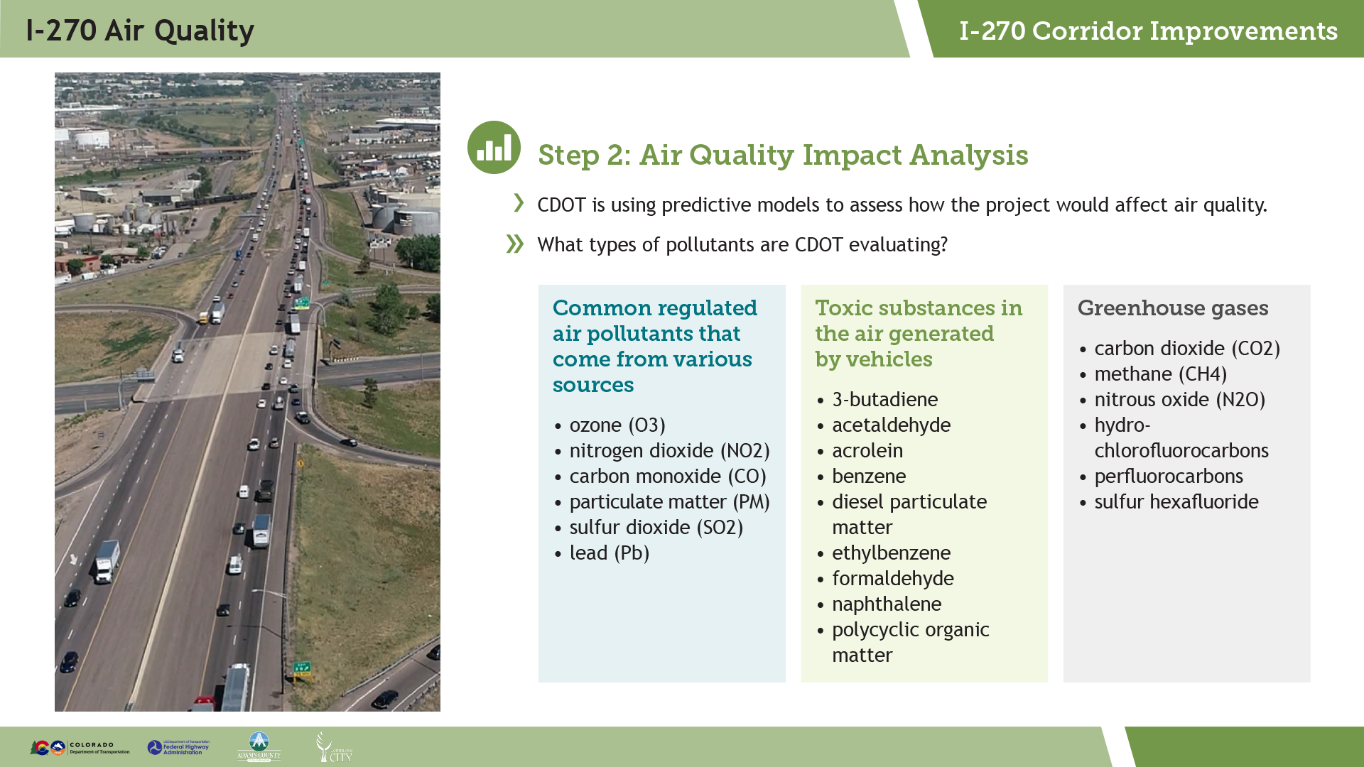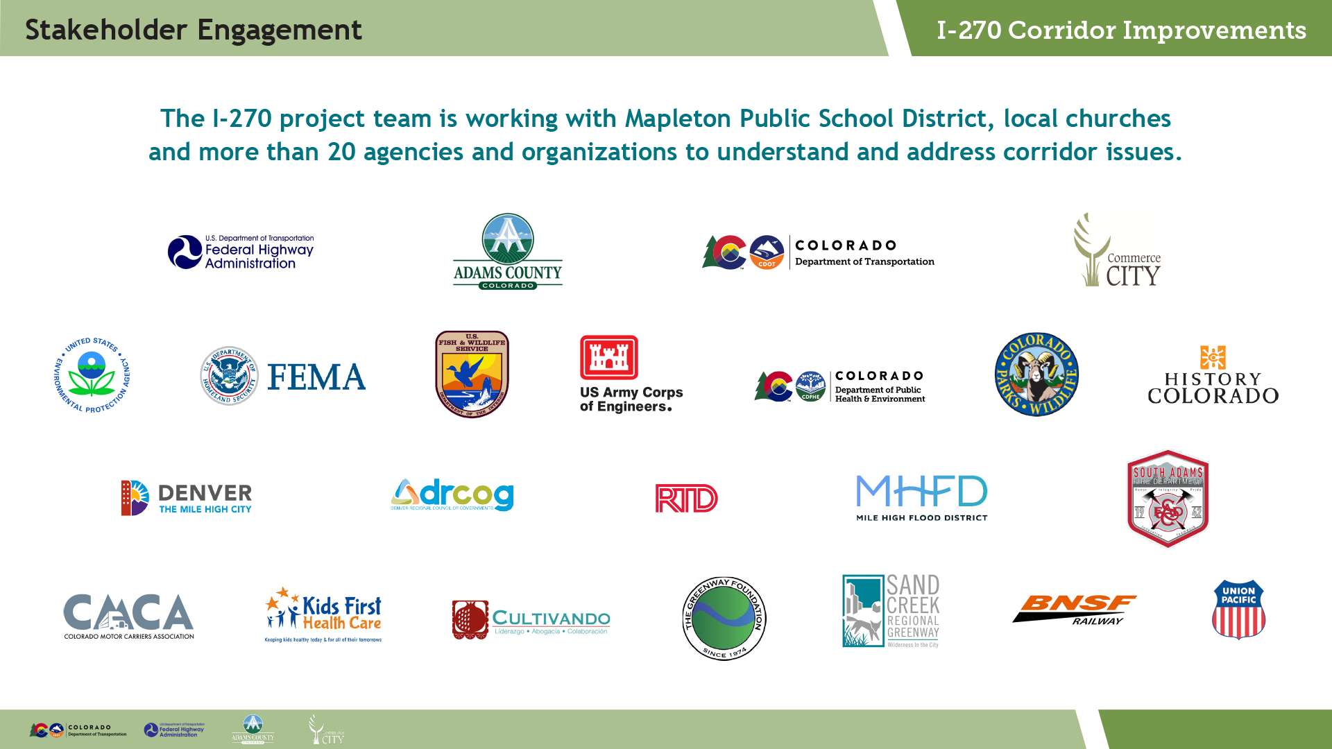Hello and welcome to our virtual open house. I-270 is the most congested freeway in the state of Colorado. CDOT is looking forward to making improvements in this corridor to better accommodate many forms of transportation. If you missed our previous virtual events in 2020 you can get up to speed by viewing past meeting contents on the project website at the link in the presentation below this video. Scroll through our open house and read through the information below to learn about community commitments, project design details and the project schedule. Express Lanes are included in the Preferred Alternative. Analysis and support for this decision is included in the detailed comparison with a traditional general purpose lane. When you see information that you have a question about or would like to provide input on, use the comment box below each display to submit your question or comment. If you’d like to stay informed in the future, scroll to the bottom of this open house site to sign up for email updates. Thank you for helping us shape the future of the I-270 corridor.